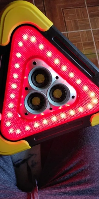 - Funktion: 3-i-1 (triangel, LED-varning, nödbelysning)